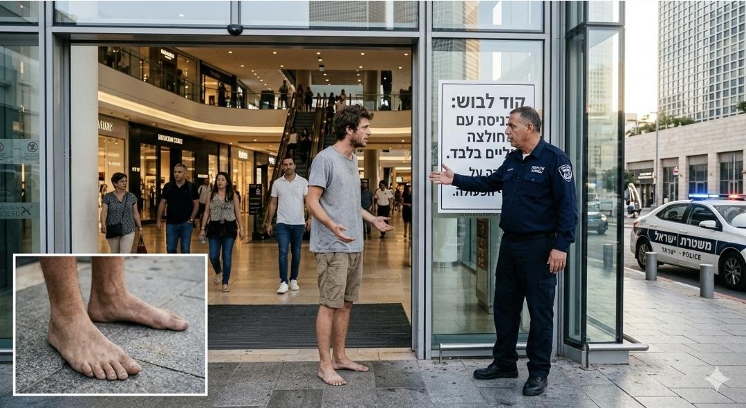 "רום היחפן" (כך הוא מכנה את עצמו) ביקש להכנס לקניון עזריאלי כשהוא יחפן וללא חולצה וכניסתו נמנעה.